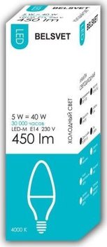 Светодиодная лампочка Belsvet LED-M C37 5 W 4000 К E14
